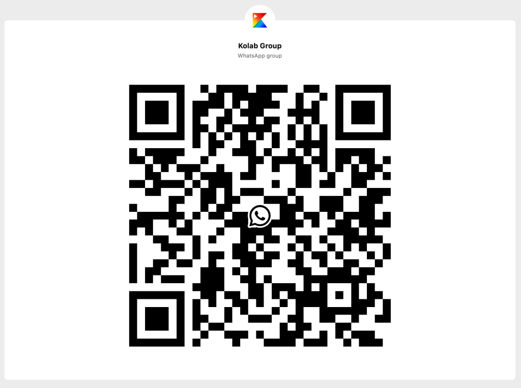 Kolab Starter – a straightforward way to begin your journey. Just join the Kolab Group via the Kolab Whatsapp group. This allows networking with founders and other members, discussing innovation and product development. Sign up by clicking the button below or scanning the QR code. WhatsApp is available on desktop, tablet, and mobile.